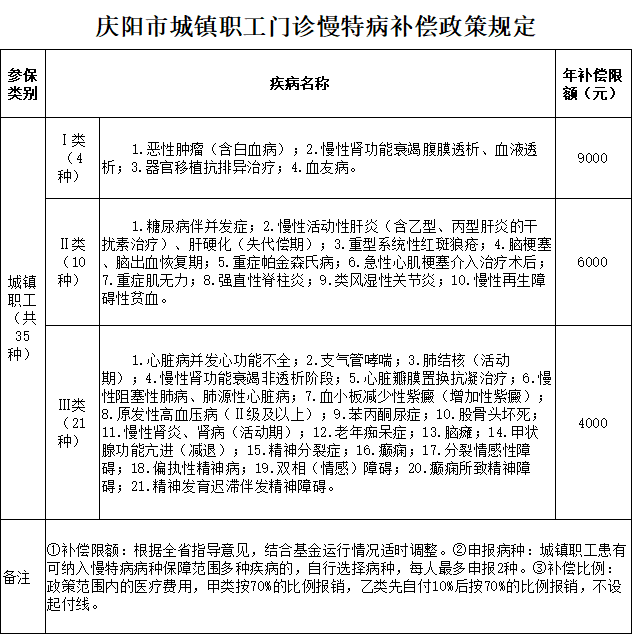 庆阳市城镇职工门诊慢特病补偿政策规定