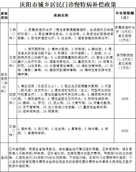庆阳市城镇职工门诊慢特病补偿政策规定