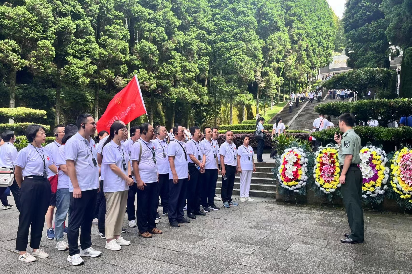 在井冈山革命烈士陵园,我院党员干部向先烈敬献花圈。