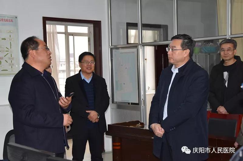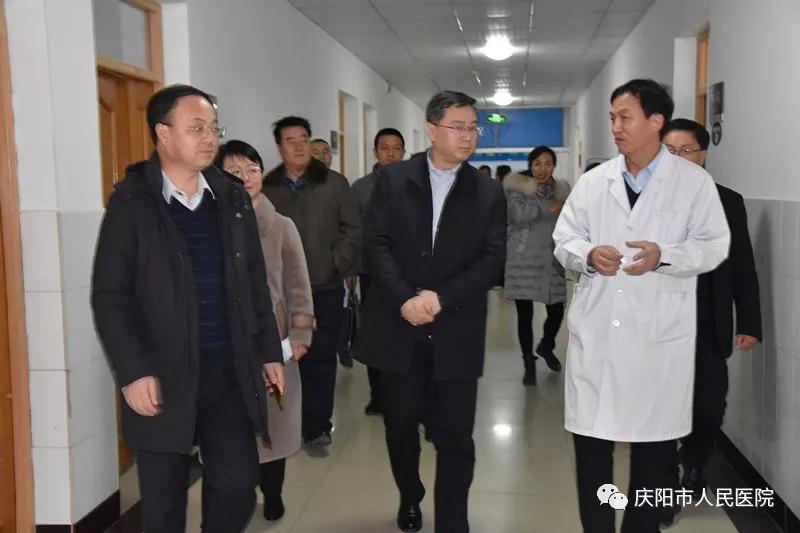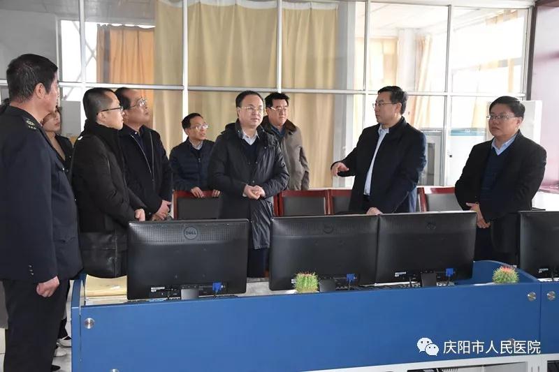 2019年1月8日,副市长王胜一行莅临庆阳市人民医院,就信息化建设和急救绿色通道建设工作进行调研。市政府办公室副主任王建刚、市卫计委副主任李元庆、市医改办主任张伟等一同参加调研。市人民医院院长张志峰、党委书记田晓芳等陪同。