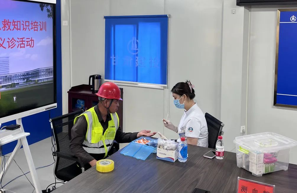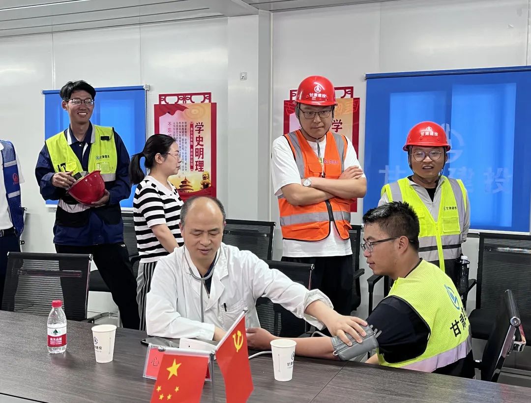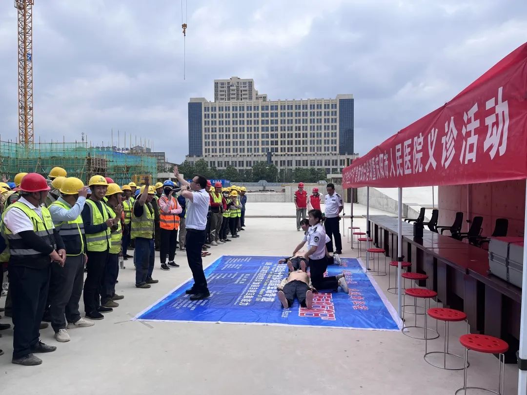 6月16日,庆阳市人民医院医务党支部、创伤中心党支部联合组织相关专家,在陇东区域医疗中心施工现场为广大项目建设者进行急救知识培训及义诊。