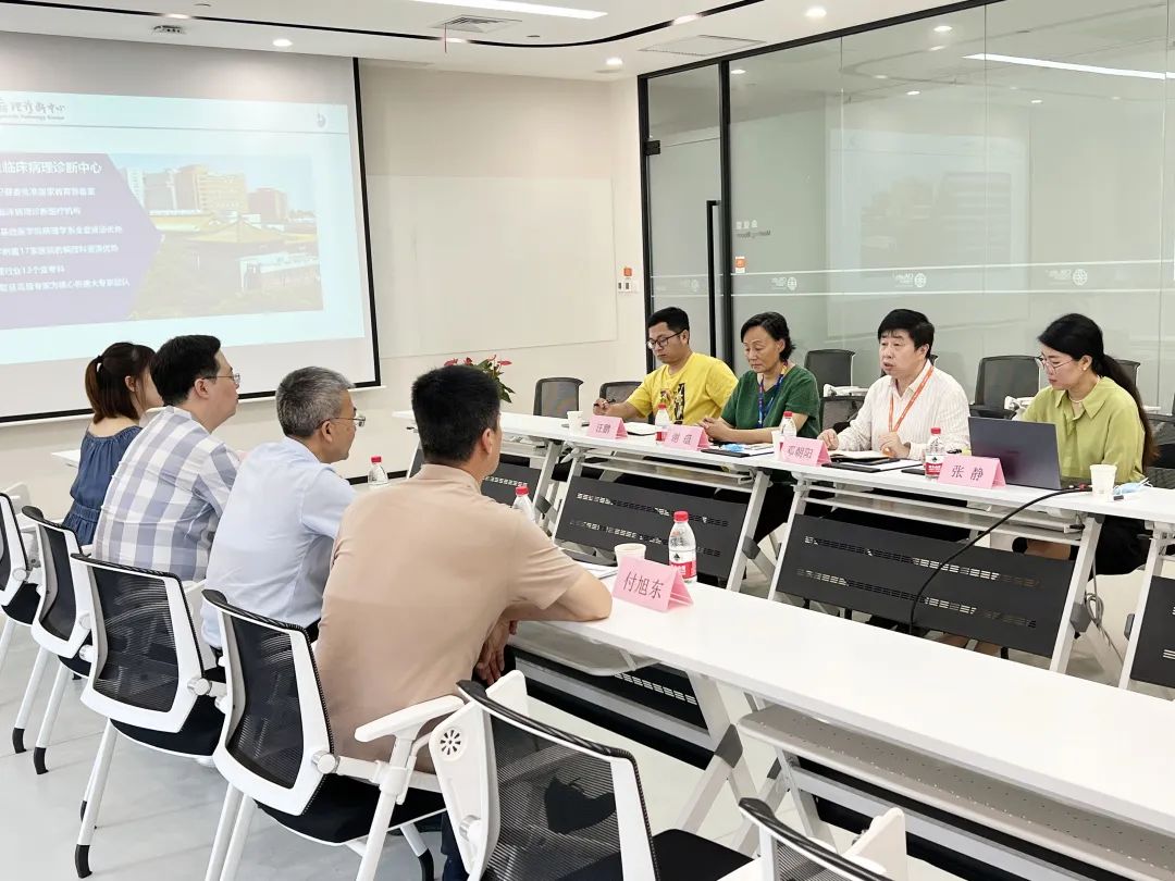 在复旦病理诊断中心,听取情况介绍,参观病理取材室、细胞学室、分子实验室及诊断室,围绕远程病理会诊、数字病理化平台建设、科室建设、质控规范、人才培养、学术与科研创新、赋能临床诊疗等内容进行深入交流和座谈。